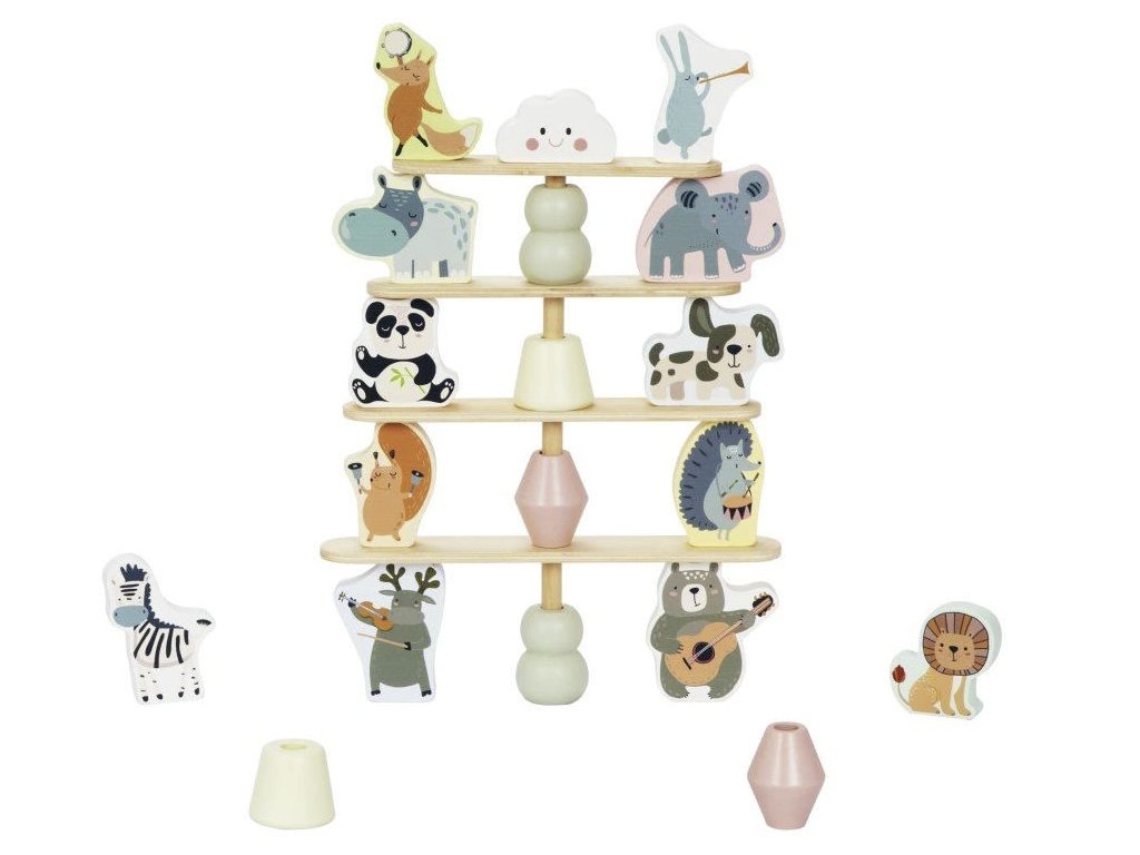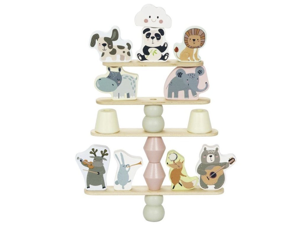 Dřevěná balanční hra s veselými zvířátky může mít spoustu podob a nabízí nespočet možností ke hře. Jestli si děti pohrají jen s dřevěnými zvířátky, se skládací duhou nebo se pustí do stavění pyramid, je jen na dětské fantazii. Ať už děti hru pojmou jakkoliv, vždy si s ní užijí spoustu zábavy - samy, s kamarády i s rodiči. V této balanční hře může balancovat téměř kterýkoliv dílek, je možné je skládat na sebe, vzájemně propojovat a pokusit se postavit co nejvyšší pyramidu ze zvířátek i dílků. Při této mnohdy napínavé balanční hře děti dokonale potrénují jemnou motoriku, zdokonalují koordinaci očí rukou, logické myšlení, prostorovou představivost, rozvíjí fantazii a kreativitu, učí se trpělivosti a soustředit se, budují sociální vazby, tráví více času se svými blízkými.