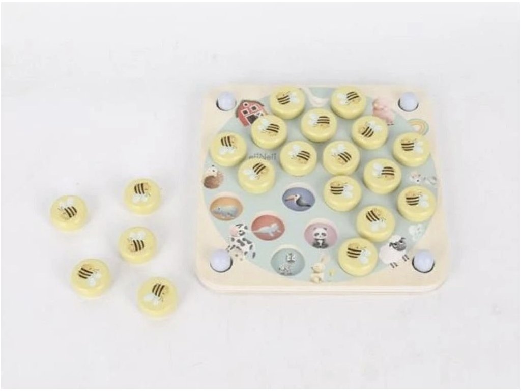 Dřevěné pexeso - Včeličky je vyrobeno z kvalitního dřeva, které zajišťuje dlouhou životnost a odolnost. Součástí hry je 5 podkladů (oboustranných karet) - jedna hra tedy může mít až 10 obměn.