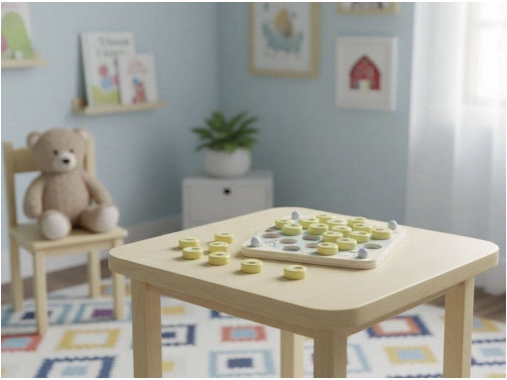 Hladké hrany a povrchová úprava zajišťují, že hračka je bezpečná i pro ty nejmenší. Děti si mohou hrát bez rizika zranění.