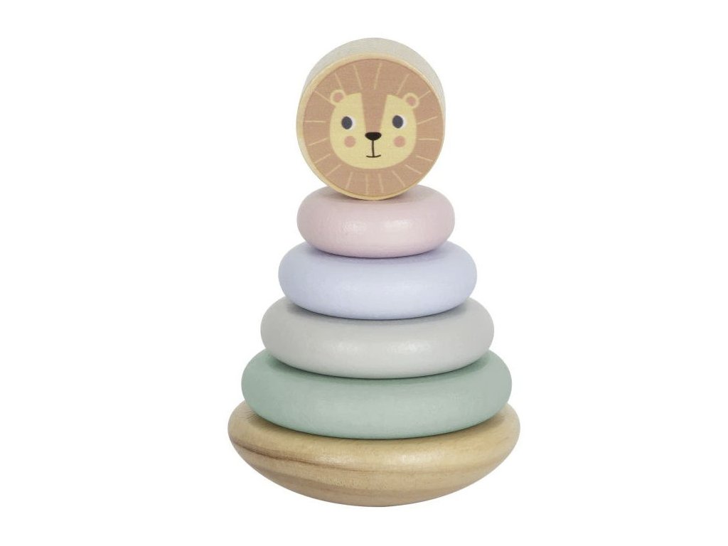- Pyramida - dřevěná pyramida lvíček zdokonalí dětské dovednosti, naučí děti poznávat barvičky, poznávat rozdíl mezi větší a menší, skládat kroužky od největšího po nejmenší a naopak.