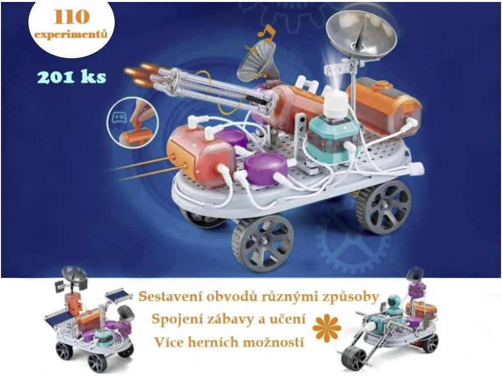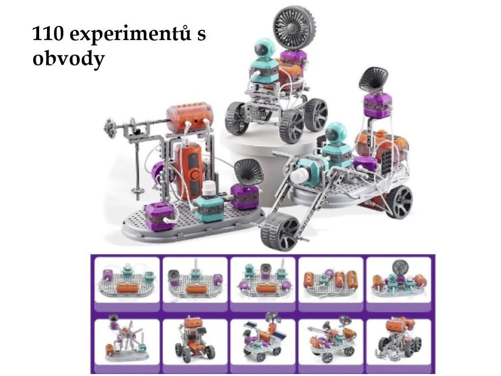 Jedinečná vzdělávací stavebnice se 110 různými experimenty přináší dětem nejen zábavu, ale i první kroky do světa fyziky. S jednoduchými dílky mohou malí stavitelé zkoušet různé kombinace a učit se, jak funguje princip elektrického obvodu.